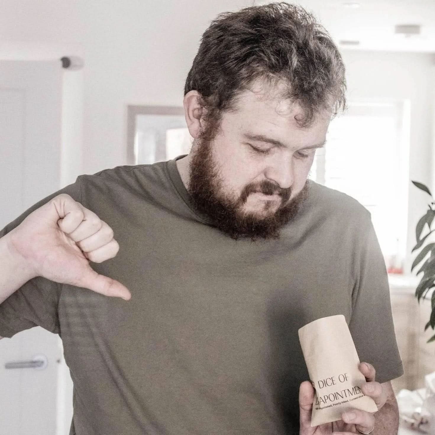 PACKAGED IN: A small brown kraft bag with our logo on it and some kind of like idk... thumbs down... or the word disappointment. Just cross that out if you dont want your mark to know you dont like them. Spoiler though: They will know soon enough how you feel Funny Dice.