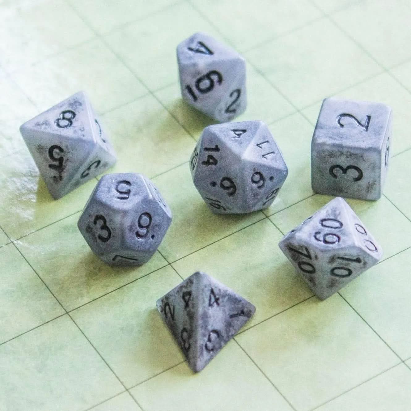 Whether you're a Necromancer or are setting up for Curse of Strahd. These Ghoulish Graveyard dice are perfect to bring extra character to your rolls. Chillings stoney and grey, perfect for steadfast characters or those with an inkling to raise the dead!