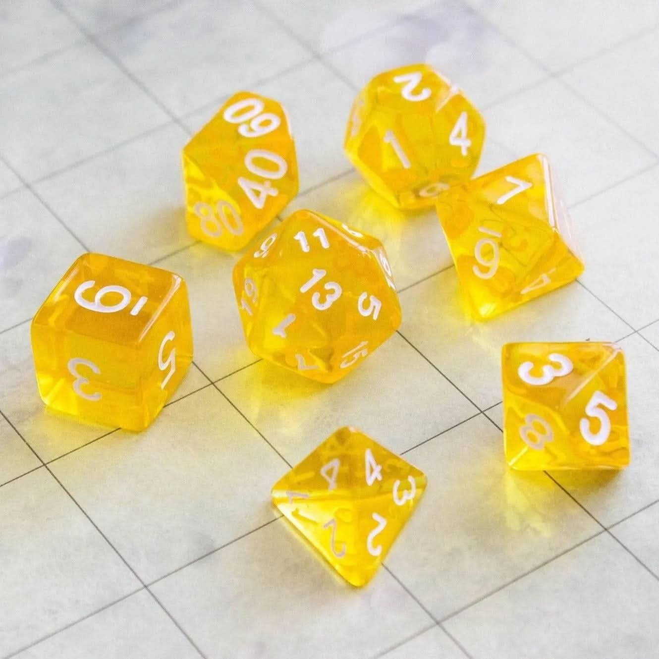 Enhance your gaming and decision-making with this Transparent Yellow Dice Set—a perfect fusion of precision, durability, and style. Crafted from high-quality acrylic, these dice offer: