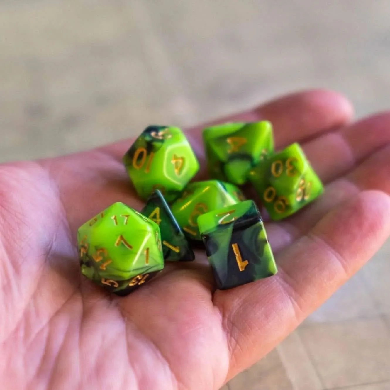 - Traditional 7-piece RPG dice set – D4, D6, D8, D10, D12, D20 and Percentile Dice